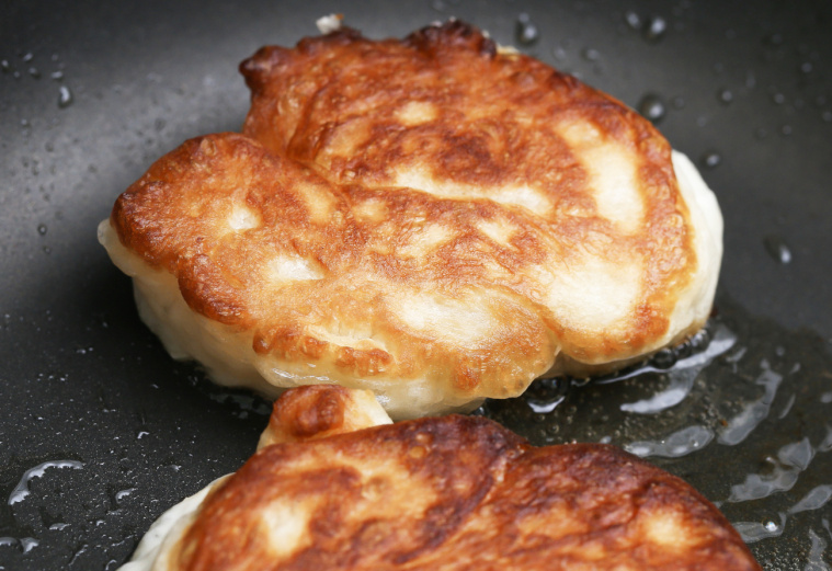 - Na patelni rozgrzej niewielką ilość oleju. Nakładaj na nią łyżką ciasto i smaż racuszki, aż się zrumienią z każdej strony.