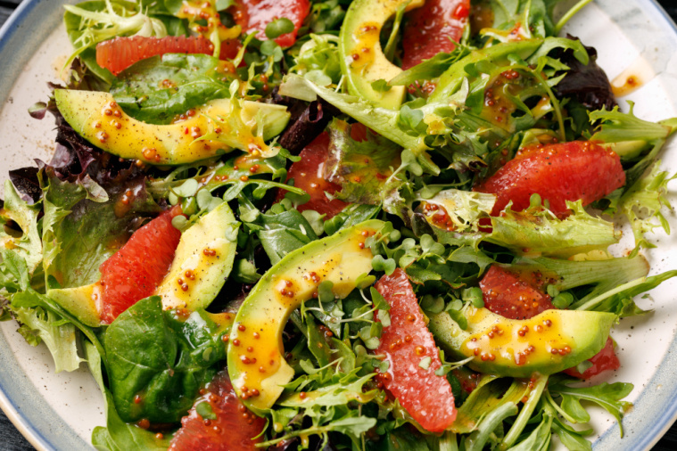 Królem „królowej zimy” jest oczywiście awokado. Im bardziej jędrne, ale zarazem dojrzałe i miękkie, tym lepiej. Do tego obowiązkowo cytrus. Ja najchętniej wybieram czerwonego grejpfruta, ale możesz użyć też 1/2 pomarańczy, 2 mandarynek, 2 klementynek lub 1/4 pomelo.