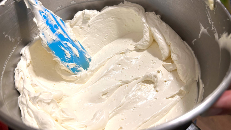 - Po każdym dodaniu miksuj przez około 1 minutę, a na koniec miksuj jeszcze około 2 minut, aż krem będzie jednolity i aksamitny.