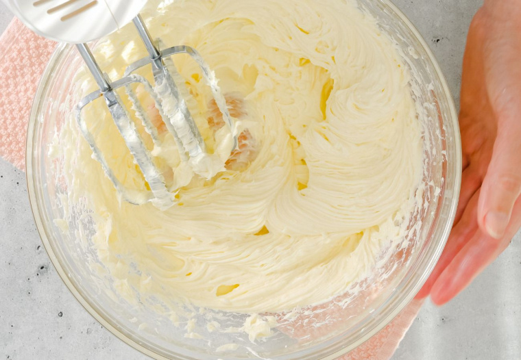 - Gdy budyń całkowicie wystygnie, dokończ przygotowywanie kremu: wsyp do miski 150 g cukru pudru, wrzuć miękkie masło. Utrzyj przez ok. 5 minut za pomocą miksera na puszystą i jasną masę. Do takiej masy dodawaj stopniowo po łyżce wystudzony budyń. Kolejną porcję budyniu dodaj po wmiksowaniu poprzedniej - masa powinna być gładka i bez grudek.