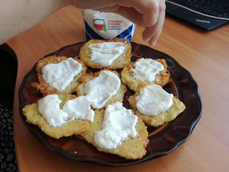 O dziwo podobnego zdania był Dimitrij, który mocno zdziwił się przekąszając placki ziemniaczane na słodko, choć z początku był raczej sceptyczny: – Co to za kpiny? – zapytał, po czym wziął jednego „gryza” i… – To wcale nie takie złe. Naprawdę smaczne. Macie jeszcze trochę? Po tych pytaniach jego polski kolega zażartował, że to prosta droga do tego, by pozbawić go obywatelstwa Białorusi, gdzie o takich dodatkach do ukochanych przez wszystkich placków nikomu się nie śniło…