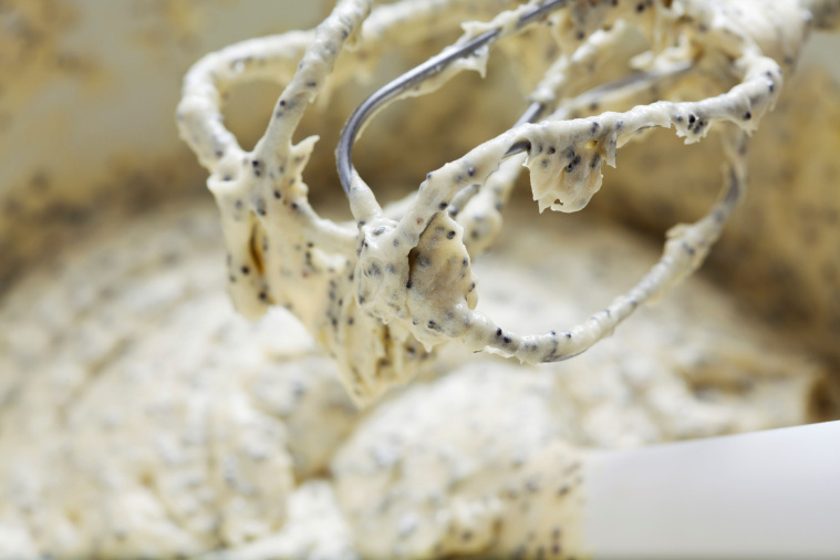 - Wsyp suche składniki, czyli mąkę i proszek do pieczenia. Następnie dodaj mak i skórkę z cytryny. Wymieszaj delikatnie – szpatułką, drewnianą łyżką lub mikserem ustawionym na niskie obroty.