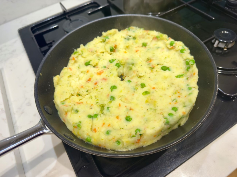 - Dodaj warzywa do ziemniaków i dokładnie wymieszaj.