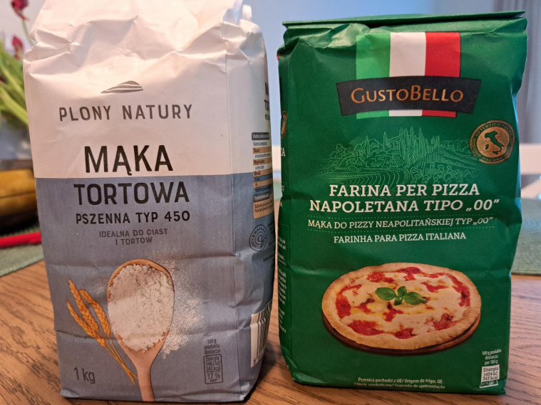 - Mąka 00 (włoska mąka do pizzy) – idealna także do pizzy. W tym przypadku 00 nie oznacza braku składników mineralnych. To po prostu włoski system oznaczeń. W tym przypadku mąka 00 zawiera podobną ilość tzw. popiołu co polska mąka 450 czy 400, ale za to jest drobniej mielona, co wpływa na jej właściwości wpływające na większą rozciągliwość ciasta.