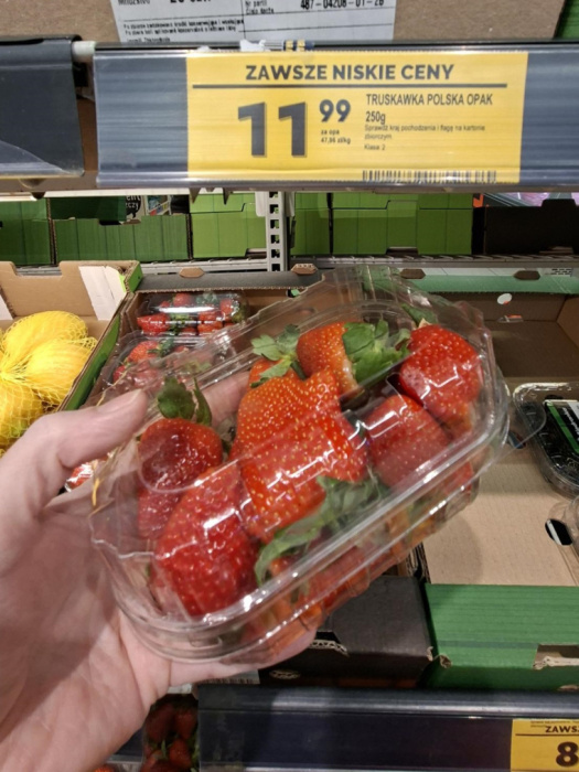 Jeszcze do niedawna półki w Biedronce były pełne truskawek z Grecji - łatwo dostępnych i w przyzwoitej cenie. Za opakowanie 250 g trzeba było zapłacić około 6,99 zł, co zachęcało do zakupów. Choć takie owoce wyglądają apetycznie, pod względem smaku i aromatu wyraźnie ustępują tym, na które czeka się najbardziej - rodzimym. Cierpliwość fanów polskich truskawek została jednak nagrodzona, bo do sprzedaży trafiają właśnie pierwsze w tym sezonie polskie truskawki - co prawda jeszcze szklarniowe, ale już nasze, lokalne.