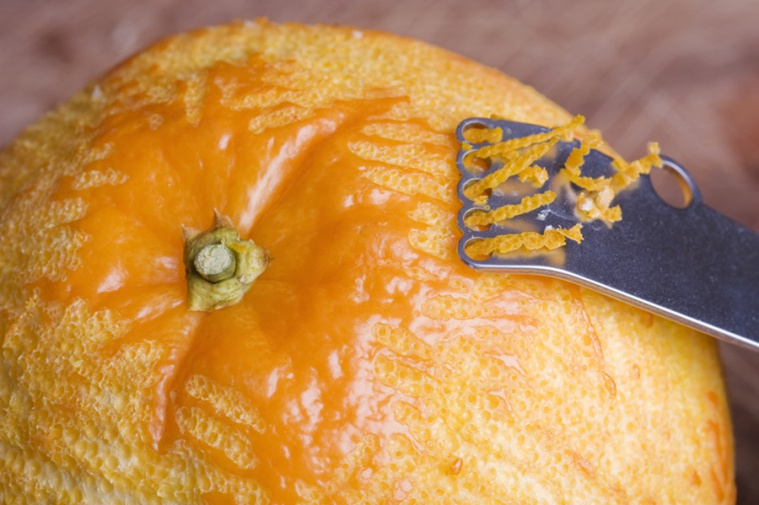 - Umyj pomarańczę i zetrzyj skórkę z połowy owocu na drobnej tarce, uważaj, żeby nie zetrzeć białej, gorzkiej części. Dodaj skórkę do masy.