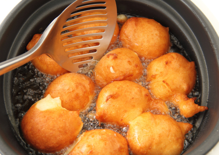 - W szerokim garnku rozgrzej smalec do temperatury 170-175 stopni (sprawdź termometrem cukierniczym).
