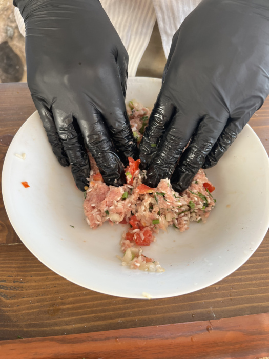 Sam farsz na greckie gołąbki też nie jest dużym zaskoczeniem. Grecy dodają do nich jednak surowy ryż, a nie gotowany. Ryż gotuje się dopiero przy gotowaniu zawijasów, więc jest w 100% nasiąknięty smakiem mięsa i przypraw.