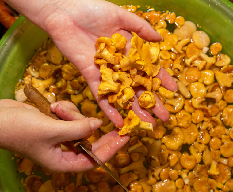 Kapelusze kurek są lekko pofałdowane, a drobne trzonki często pełne drobinek piasku, igliwia oraz resztek leśnej ściółki. To nie ułatwia czyszczenia tych grzybów. Robienie tego zwykłym nożykiem lub pędzelkiem trwałoby całe wieki szczególnie, jeśli masz ich całą torbę. Jeśli kusi cię mycie kurek pod bieżącą wodą, żeby pozbyć się z nich zanieczyszczeń - to średni pomysł. Te grzyby nie powinny być długo moczone przed smażeniem.