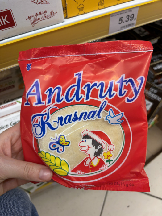 Andruty to kultowe, lekko słodkie cienkie wafelki. Kupiłam i potwierdzam, że smakują dokładnie tak, jak zapamiętałam to z dzieciństwa. Opakowanie też przywodzi na myśl design z lat 90.