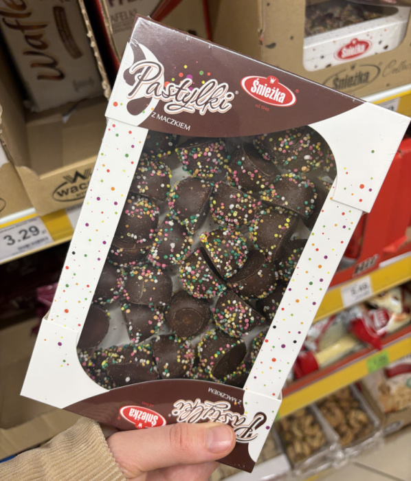 Przyznaję, że ten słodycz to już nie moje wspomnienie z dzieciństwa, a wspomnienie mojej mamy w PRL. Zawołała mnie ona specjalnie na widok tego opakowania. Słodycze te były sprzedawane na wagę i bardzo popularne. Serwowano je w kryształowych PRL-owskich misach.