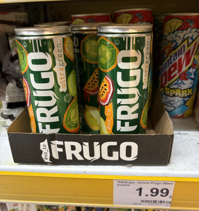 Napój Frugo już jakiś czas temu zaliczył wielki powrót do sklepów. Po pierwotnej ekscytacji tym, że "FRUGO wraca" mam wrażenie, że trochę zniknął on z radaru sklepów spożywczych. W Dino można kupić Frugo w puszce, w wersji gazowanej za 1,99 zł.