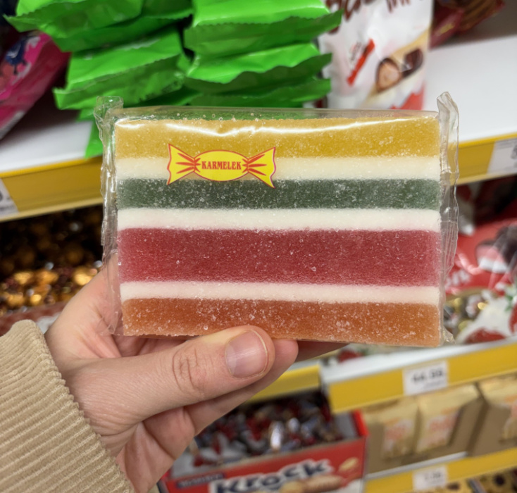 W czasach PRL można było kupić takie galaretki na wagę, krojone i pakowane w papier. Tu współczesna wersja firmy Karmelek.