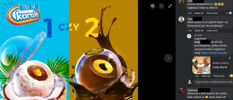 Te kultowe lody były dostępne w sprzedaży jeszcze w 2016 roku, ale przestały być produkowane. Pod postem marki Koral na Facebooku z tamtego roku dotyczącym Tartufo zebrało się z czasem mnóstwo opinii, komentarzy i próśb o przywrócenie tych lodów. Firma jeszcze w 2025 r. odpisała jednemu z fanów, że już ich nie produkuje, ale powrót okazał się być kwestią bardzo krótkiego czasu. W 2026 r. Tartufo wróciło do sklepów.
