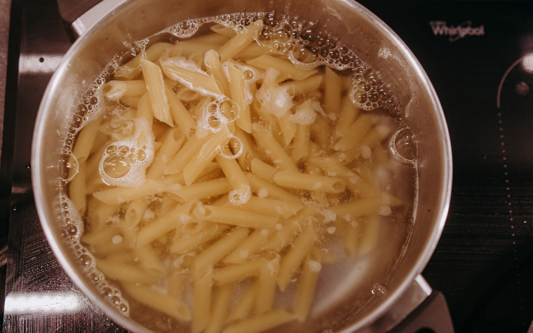 Pierwszy błąd to za mały garnek i za mało wody. Wydaje się, że mniejszy garnek szybciej się zagotuje, więc po co wyciągać większy. Problem w tym, że makaron potrzebuje miejsca. W ciasnym garnku temperatura po wrzuceniu makaronu gwałtownie spada, a sam makaron zaczyna się sklejać. Potem trzeba go rozdzielać łyżką, a i tak nie gotuje się tak, jak powinien.