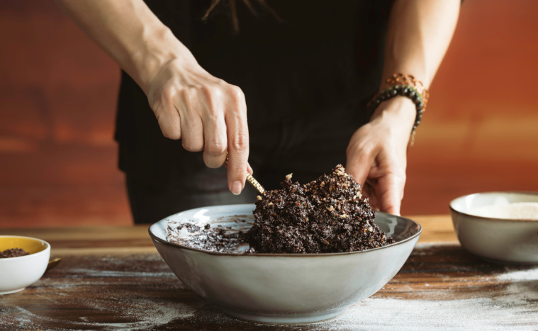 - Do maku dodaj wszystkie składniki na masę makową i wymieszaj. Koniecznie spróbuj – powinna być wyraźnie słodka. W razie potrzeby dosłodź miodem lub cukrem.