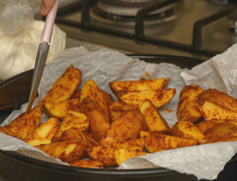 - Miękkie ziemniaczki zostaw jeszcze na dodatkowe 10 minut w wyłączonym piekarniku, by były bardziej chrupiące.