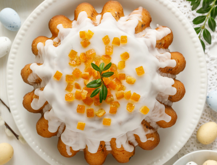 - Ostudzoną babkę udekoruj pomarańczowym lukrem i kandyzowaną skórką pomarańczową.