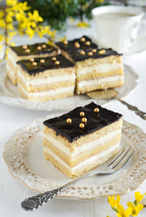Zrobienie tego sernika budyniowego nie wymaga użycia miksera. Potrzebujesz tylko prostokątnej blaszki do upieczenia blatów i garnka do ugotowania masy. Przed podaniem warto deser schłodzić, żeby ciasto miodowe delikatnie zmiękło i nabrało wilgoci, a masa serowa stężała. Cierpliwe oczekiwanie na pierwszy kęs to jedyny mankament babcinego przepisu!
