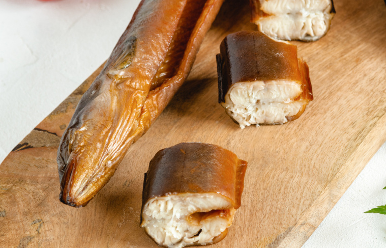 - Wędzony węgorz na zimno. Pokrój w plastry, podaj z chrzanem i kromką żytniego chleba.
