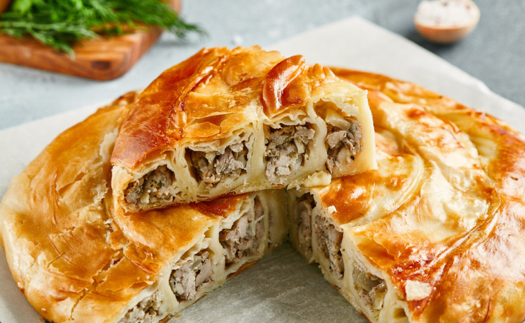 Podobno jego kolebką jest Anatolia, ale część badaczy doszukuje się jego korzeni jeszcze dalej na wschód, w perskich wypiekach warstwowych. Tak czy inaczej, jedno jest pewne: przez wieki ciasto yufka (czyli filo) stało się fundamentem potrawy, która rozprzestrzeniła się po całym basenie Morza Śródziemnego. W różnych krajach ma odmienne nazwy, różne kształty i różne farsze, ale zawsze ma dwie cechy: chrupiące, cienkie ciasto i soczyste wnętrze.
