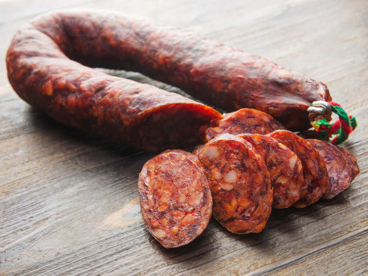 - 1 pętko wędzonej kiełbasy typu chouriço (chorizo)