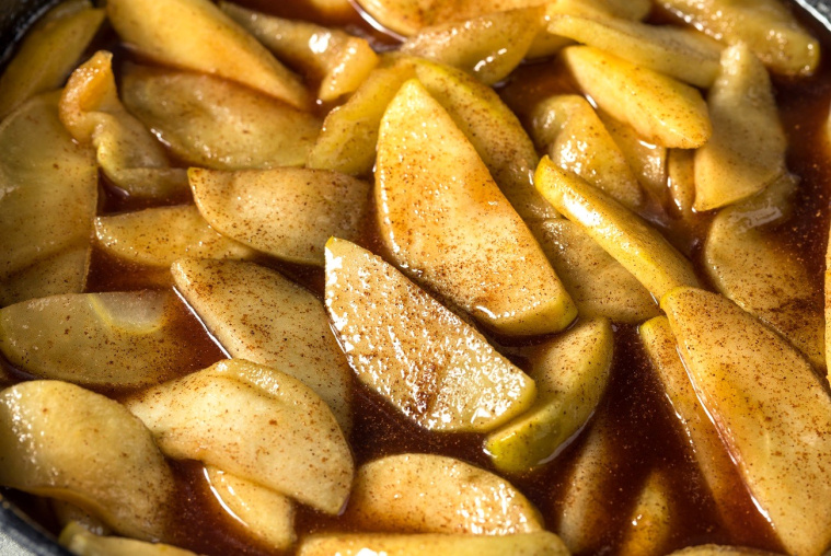 Jeśli pieczesz ciasta i robisz desery dość rzadko, możesz zmniejszyć ilość składników o połowę. Aby zrobić większy zapas, po prostu je proporcjonalnie pomnóż. Słoiki dokładnie wyparz i sprawdź, czy zakrętki dobrze się trzymają i nie „przeskakują” przy zakręcaniu. Jeśli nie planujesz pasteryzować, przechowuj jabłka w lodówce i zjedz w ciągu kilku dni.