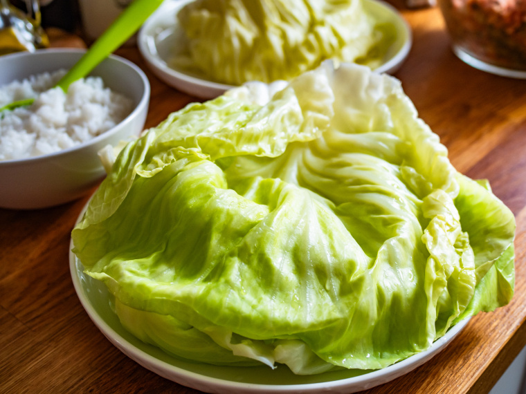 Dlatego pilnuj czasu parzenia młodej kapusty jak oka w głowie. Zagotuj wodę, włóż liście i obserwuj. Gdy te tylko zmiękną na tyle, że da się je swobodnie zginać, natychmiast je wyjmij i kładź na przygotowanym obok talerzu. Jeśli nie masz pewności, czy może parzyły się za długo, możesz nawet przełożyć je do zimnej wody, żeby zatrzymać proces mięknięcia. Pamiętaj, że kapusta będzie jeszcze podlegała obróbce termicznej, czyli pieczeniu lub gotowaniu, podczas której dalej będzie nieco miękła.
