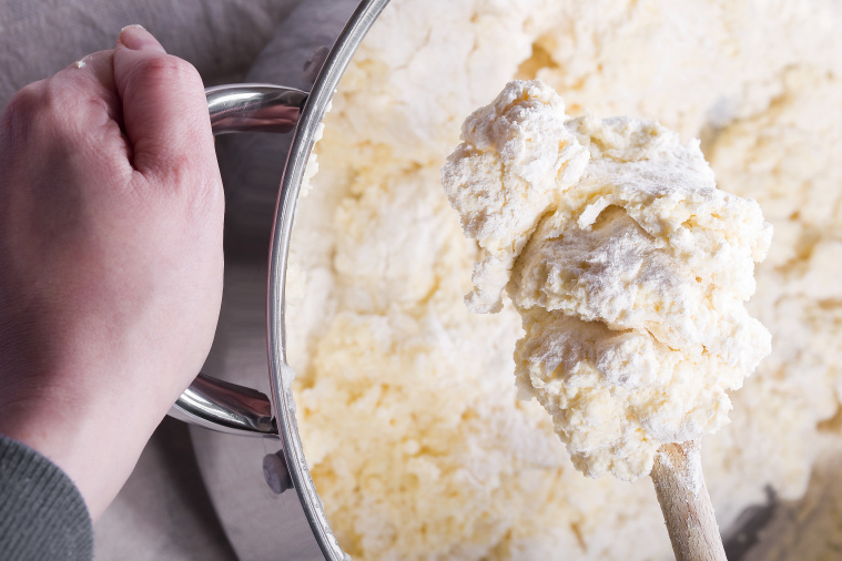 Jak więc sobie poradzić z oboma zagadnieniami? Zacznijmy od mąki. Niektórzy mają tendencję do przeholowywania z jej ilością w trakcie wyrabiania ciasta. Jeśli czujesz, że jest ono zbyt rzadkie, by dało się z niego uformować kluski to… wszystko jest jak należy!