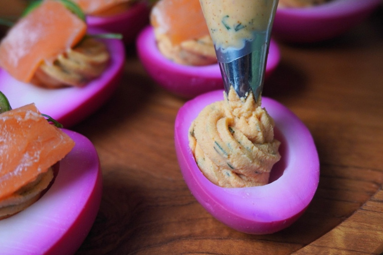 Jak zrobić różowe jajka faszerowane?