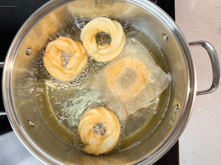 Powstała w ten sposób masa jest dość rzadka – nie rozwałkowuje się jej ani nie formuje w dłoniach jak przy innych karnawałowych słodkościach, tylko wyciska za pomocą rękawa cukierniczego. Cały proces jest bardzo prosty, a świeżo usmażone gniazdka są lekko chrupkie z zewnątrz i bardzo delikatne, napowietrzone w środku.