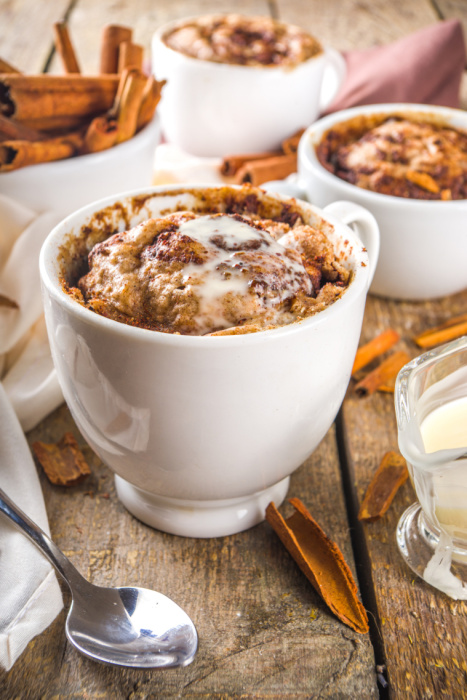 Druga rzecz, którą opatentowałam, to zamiast wykładać masę do jednej formy do pieczenia, dzielę ją na 2 części i przekładam np. do większych ramekinów lub żaroodpornych miseczek czy kubeczków. A następnie piekę tę owsiankę w tzw. monoporcjach. To prosty zabieg, który sprawia, że każdy będzie mógł zajadać cynamonkową pyszotkę prosto z własnego naczynia, a nie ze wspólnej blaszki. Szczególnie polecam ten sposób, jeśli chcesz podać pieczoną owsiankę gościom. Będzie smacznie, estetycznie oraz elegancko.
