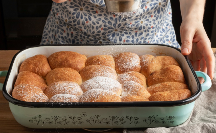 Co ciekawe, w Czechach bułeczki często piecze się w większych partiach, układając je „jedną obok drugiej” na jednej blasze. Dzięki temu bułeczki łączą się ze sobą, tworząc jeden duży, puszysty „blok”, który jest idealny do dzielenia się z rodziną i przyjaciółmi poprzez odrywanie. Tak właśnie czyni się z buchtami, które są znane i pieczone także w niektórych regionach Polski – na przygranicznych terenach Górnego Śląska i Śląska Cieszyńskiego.
