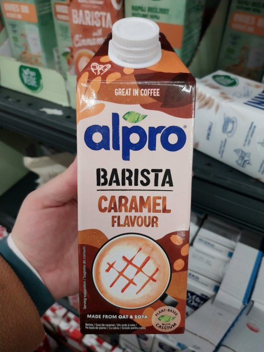 Alpro barista caramel flavour to napój owsiano-sojowy o cudownie karmelowym smaku i zapachu. Gdy dodasz go do kawy, nie musisz jej już dosładzać cukrem ani kombinować z syropami. Dobrze się pieni (możesz wlać go do spieniacza jak zwykłe mleko) i nie rozwarstwia ani nie warzy w gorącej kawie.