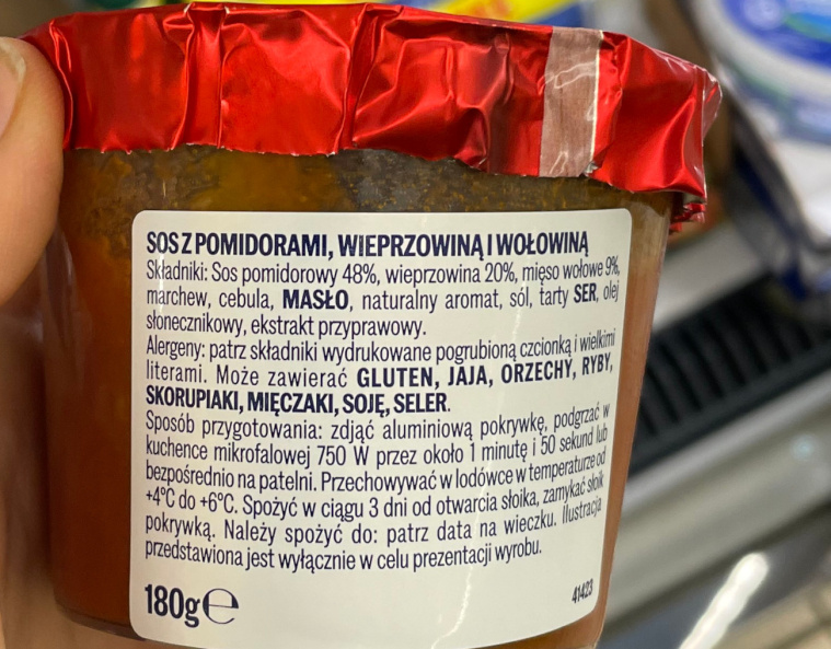 Chodzi o sos z pomidorami, wieprzowiną i wołowiną sprzedawany w czerwonych kubeczkach (180 g) w Biedronce, w cenie 7,49 zł za sztukę. Jest gotowy do użycia. Wystarczy podgrzać i podać. W smaku? Gęsty, wyraźnie pomidorowy, lekko słodkawy z nutą czosnku, z wyczuwalnymi kawałkami mięsa. Mocno domowy, ale z włoskim twistem. Nie ma tu zbędnych dodatków smakowych, wszystko gra, jak trzeba.