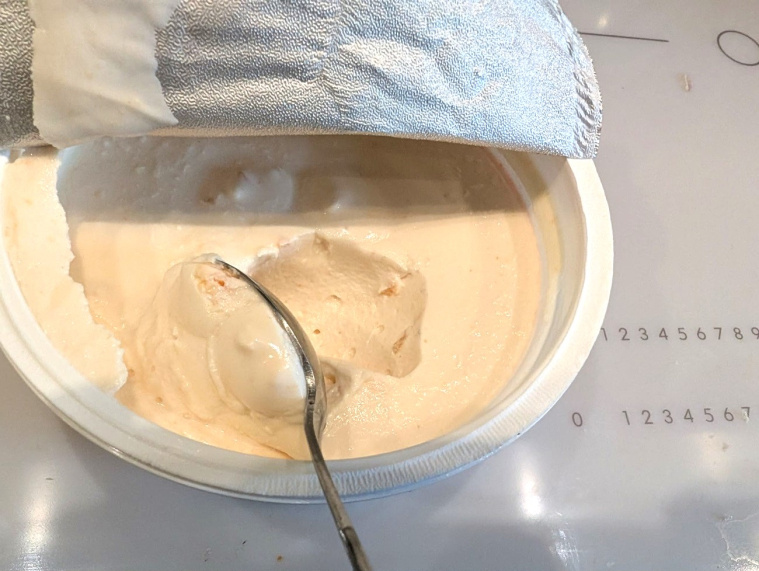 To, co od razu rzuca się w oczy po otwarciu opakowania, to konsystencja. Ten serek jest naprawdę gęsty - gdy wbijesz łyżeczkę, stoi na sztorc na sztorc. Jednocześnie pozostaje bardzo kremowy - praktycznie jak twaróg z wiaderka na sernik.