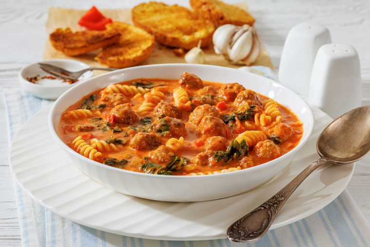 Pulpety chlebowe możesz także podać w zupie pomidorowej z makaronem lub w innych daniach jednogarnkowych. Świetnie pasują też do zupy pieczarkowej lub koperkowej.