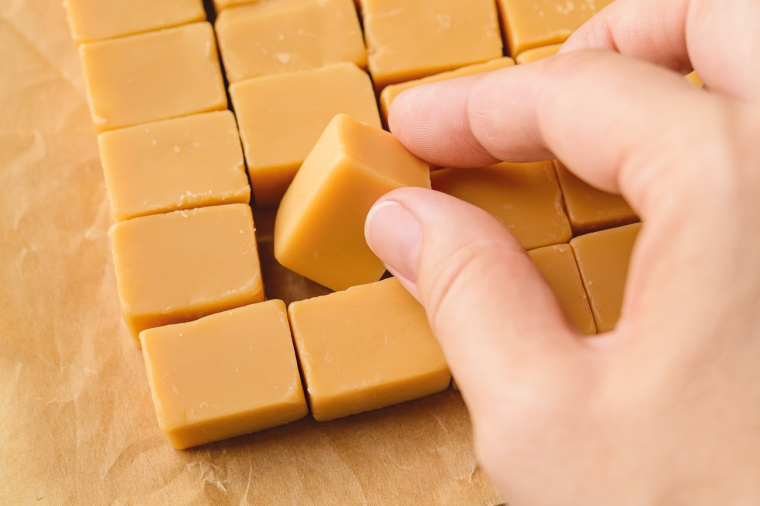 - Gdy zastygnie i osiągnie temp. pokojową, pokrój w kostkę i gotowe.
