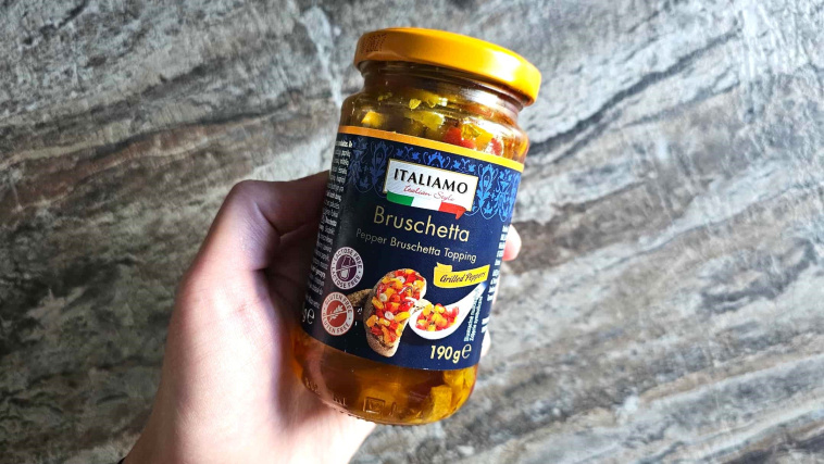 Słoiczki z serii Italiamo z produktem o nazwie pepper bruschetta topping znajdziesz w Lidlu, najczęściej podczas tygodnia włoskiego, który pojawia się regularnie co kilka miesięcy. Cena to około 5,99 zł za 190 g, więc naprawdę korzystnie, biorąc pod uwagę jakość, ilość i wydajność.