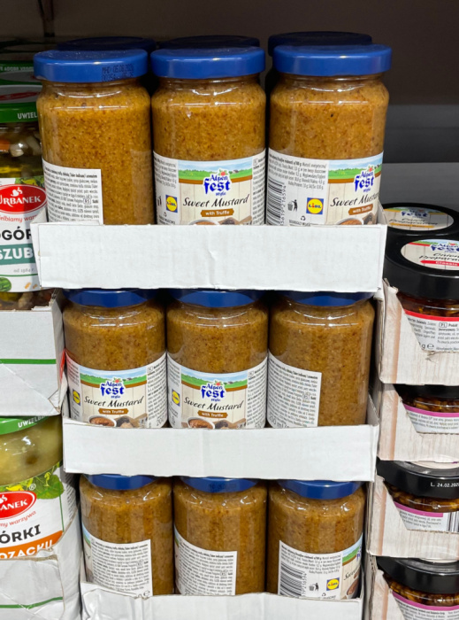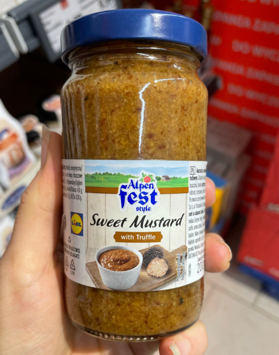 Na pierwszy rzut oka, po prostu musztarda. Ale wystarczy odkręcić słoiczek, żeby wiedzieć, że to coś więcej. Słodka musztarda z truflami z Lidla (marka Alpen Fest, dostępna sezonowo) pachnie głęboko, z wyraźną nutą grzybowo-orzechową, charakterystyczną dla trufli. Nie ma tu ostrej goryczy typowej dla musztard dijon. Jest za to przyjemna słodycz, kremowa konsystencja i złożony smak, który zostaje na języku długo po zjedzeniu.