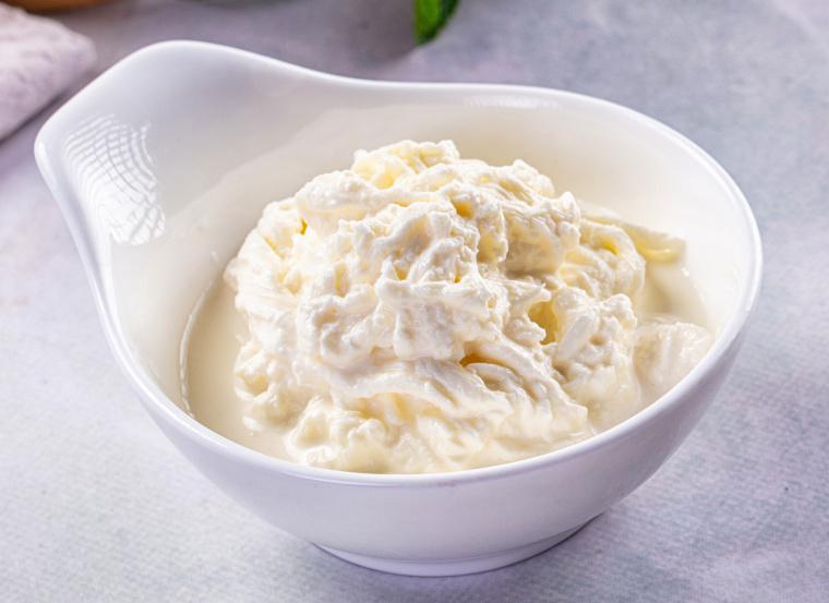 W praktyce wygląda to jak gęsty, lekko płynny krem z widocznymi nitkami sera. Nabierasz łyżką i od razu widzisz, że to coś pomiędzy serem a śmietanką. Bardzo delikatne, bardzo świeże.