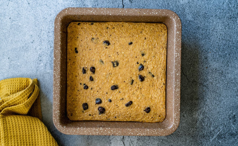 - Wyjmij z piekarnika i odstaw. Gdy ciasto ostygnie, pokrój je na kwadraty lun prostokąty.
