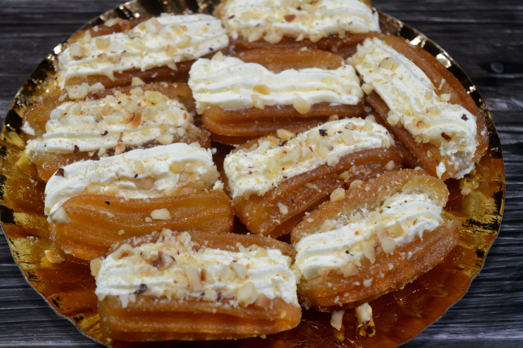 Po usmażeniu od razu trafiają do bardzo słodkiego syropu cukrowego z dodatkiem cytryny. Tam nasiąkają, aż uzyskają charakterystyczną miękko-chrupiącą konsystencję. W środku są jak wnętrze pączka, tylko że bardziej wilgotne. Zwykle nie mają nadzienia, ale go nie potrzebują, bo cały smak tkwi w połączeniu słodkiego syropu i smażonego ciasta.