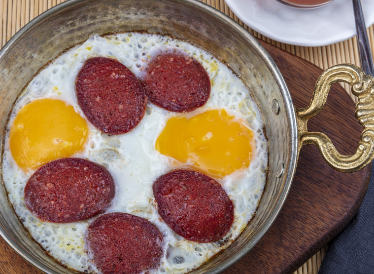 - dodaj sucuk do jajecznicy – wystarczy podsmażyć kilka plasterków, zanim wrzucisz jajka, a potrawa zyska zupełnie nowy charakter