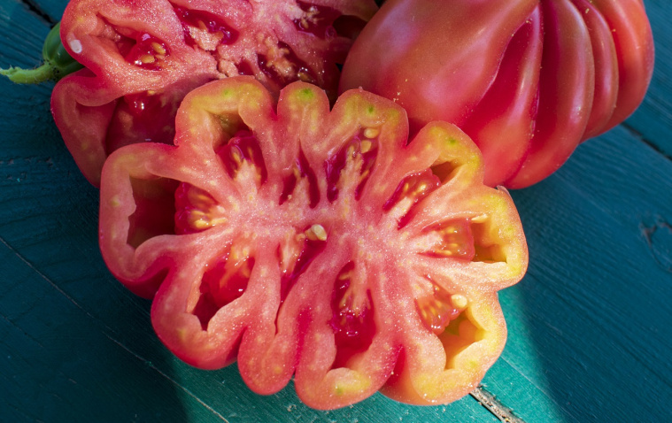 Gdy tylko je przekroisz, od razu zobaczysz różnicę w porównaniu do zwykłych, sklepowych pomidorów. Rosamunda ma intensywnie malinowo-czerwony kolor, a w środku – gęsty, jędrny miąższ. Jest praktycznie pozbawiona wodnistej części, a pestki pojawiają się tylko w niewielkiej ilości.
