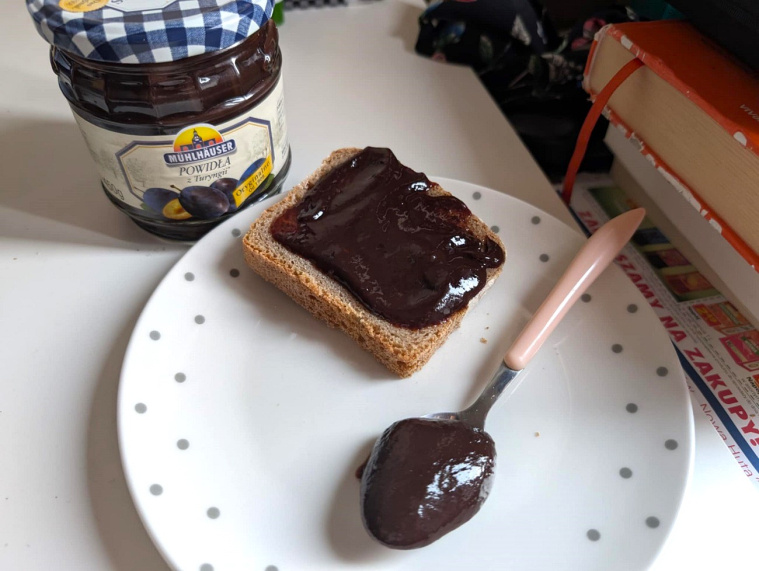 Powidła Mühlhäuser kupiłam z myślą o świętach i kanapkach na śniadanie (na ciemnym chlebie żytnim, obowiązkowo), ale dno słoika zobaczę na pewno szybciej i trzeba będzie je dokupić. Zamierzam wzbogacić nimi bigos - nabierze apetycznego, brązowego koloru i bogatszego smaku. Dodam je też do farszu na pierogi na słodko i obowiązkowo do piernika - do samego ciasta lub do przełożenia blatów. Myślę też o upieczeniu z nimi klasycznego pleśniaka. Po świętach chętnie zjem z nimi racuchy lub naleśniki - wymieszam z nimi twaróg do nadzienia.