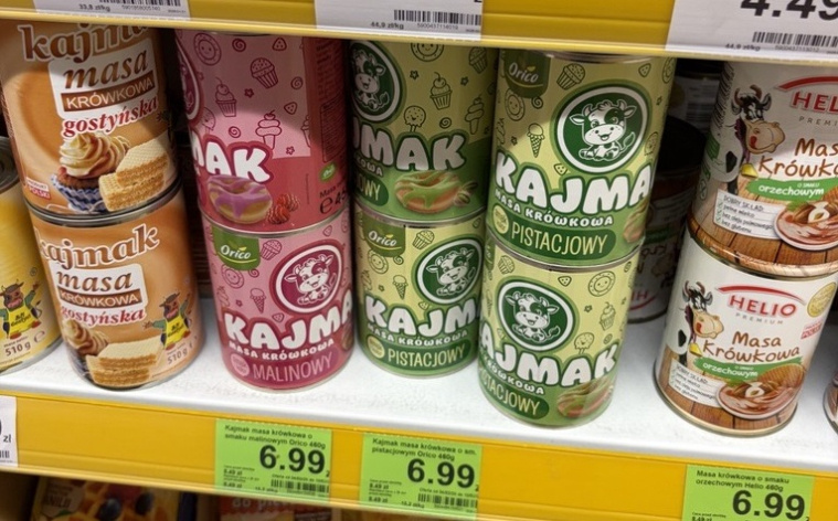 Na półkach w moim Dino były dwie opcje: malinowa oraz pistacjowa, produkowane przez markę Orico. Pojedyncza puszka o pojemności 460 g kosztuje u mnie obecnie 6,99 zł. W internecie znalazłam też masę kajmakową tej marki o smaku bananowo-toffi, ale nie była akurat w moim sklepie dostępna. Warto jednak na nią czatować, szczególnie jeśli planujesz zrobić np. banoffee. Taki gotowy kajmak znacznie to ułatwi i przyspieszy. Wszystkie sprawdzą się zresztą podczas świąt i do innych wypieków.