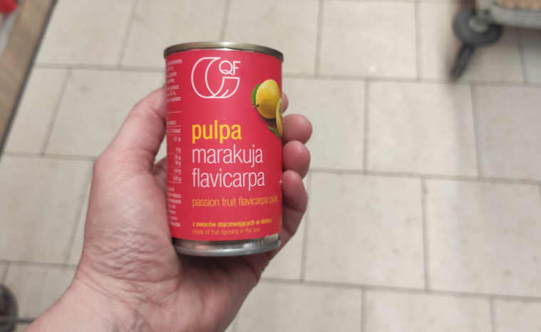 Marakuja to owoc, który rzadko pojawia się świeży w dobrej cenie. A jeśli już się trafia, jego obróbka potrafi być uciążliwa. Tymczasem gotowa pulpa to czysty smak bez żadnego wysiłku. Nic nie trzeba przecedzać, wyciskać, wybierać pestek. Otwierasz puszkę za 7,99 zł i działasz.