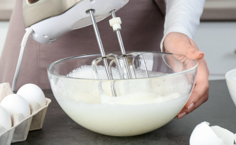 - Ubij białka jaj ze szczyptą soli na sztywną pianę.