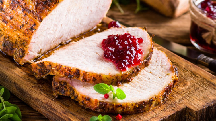 Tak przygotowany schab możesz podawać zarówno na ciepło, jak i na zimno, na przykład z żurawiną lub sosem chrzanowym.